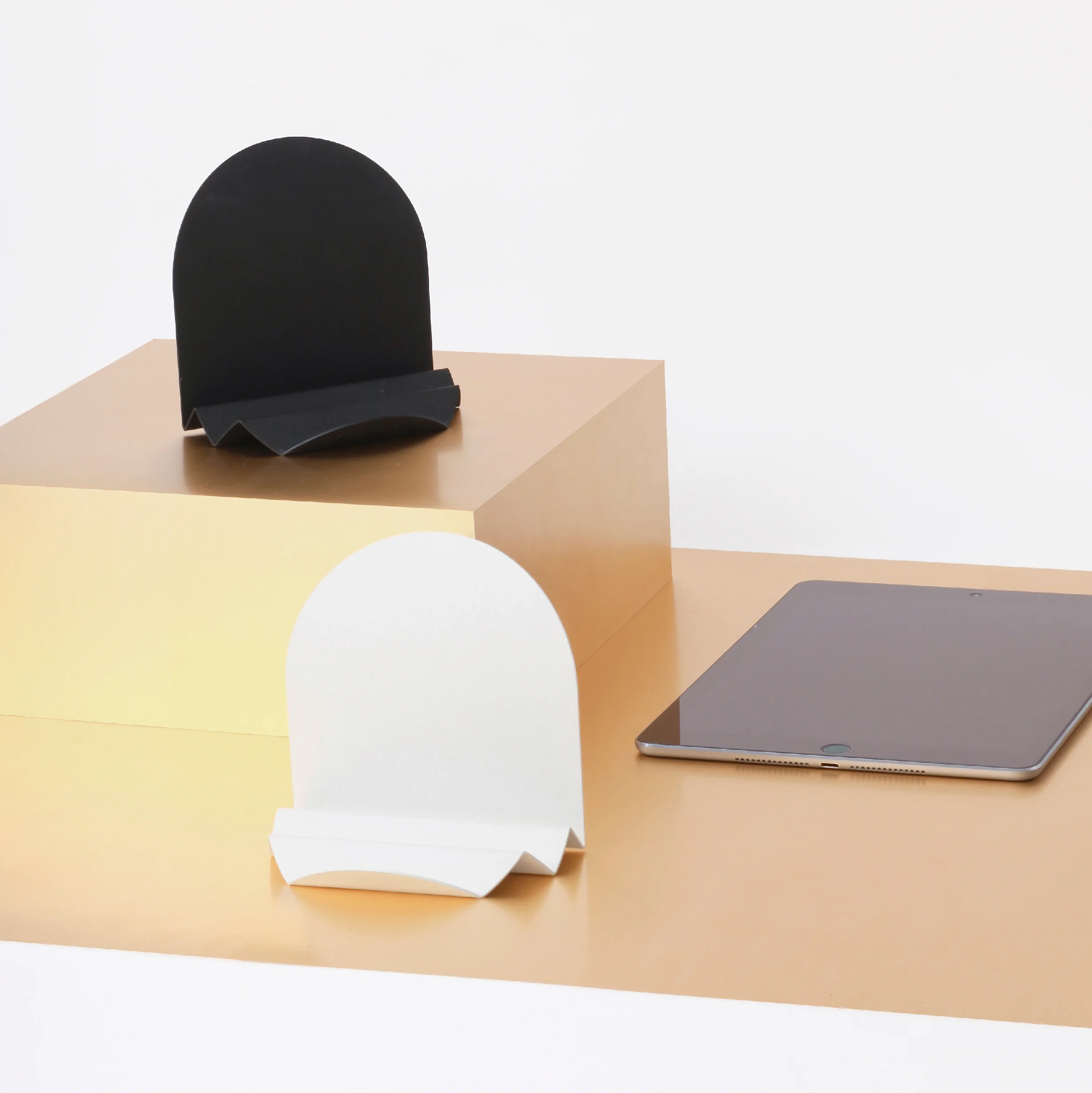 Moreover นำฟอร์มของน้ำตกมาลดทอนรายละเอียด พับเป็นทรงโค้งให้เหมือนน้ำตกที่ไหลลงจากที่สูงลงสู่เบื้องล่างเป็นระลอกคลื่น ที่วาง iPad และ Tablet ทรงน้ำตกนี้สามารถตั้งบนโต๊ะทำงาน ใช้วางมือถือ เครื่องเขียน หรือใช้ที่ไหนก็สะดวก และยังสามารถปรับองศา iPad ได้ตามระยะร่องที่วาง